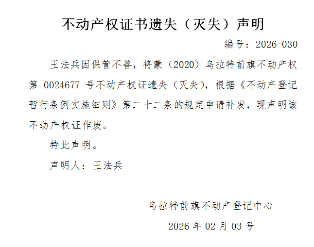 刘心旺、杨林芝不动产权证书遗失(灭失)声明