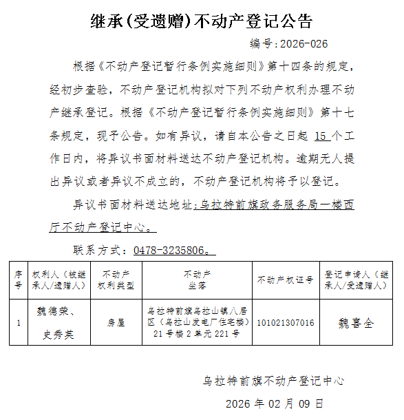 来源:乌拉特前旗不动产登记中心
