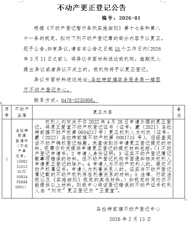 来源:乌拉特前旗不动产登记中心
