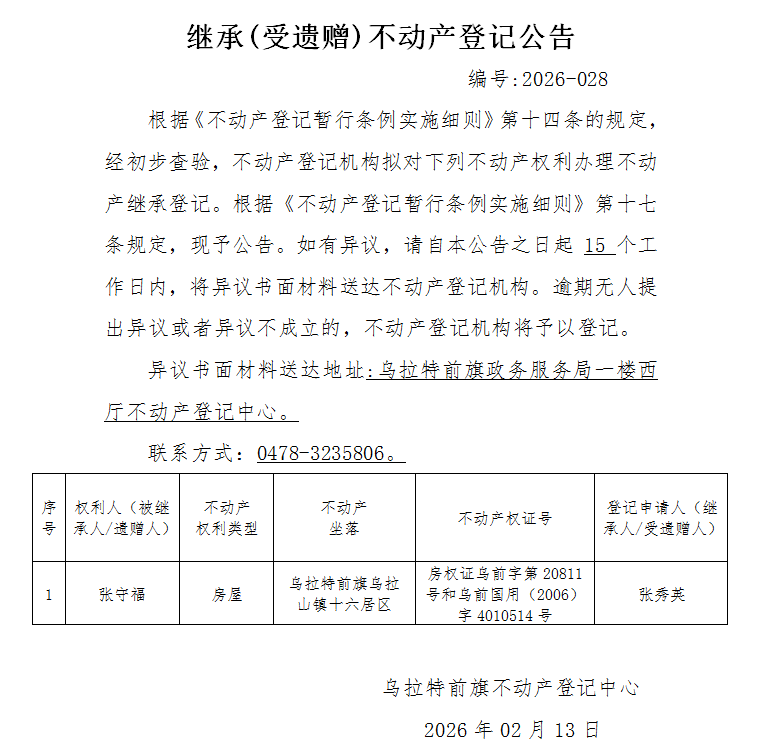 来源:乌拉特前旗不动产登记中心