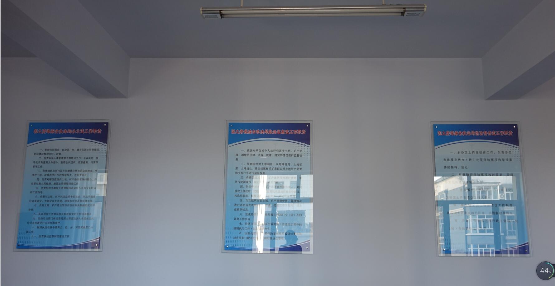 督查组全面了解了乌拉特前旗国土资源综合行政执法改革总体进展情况,重点督察执法局的办公场所、运行经费、执法车辆、执法服装、牌匾制度、公章刻制等到位情况。乌拉特前旗国土资源局局长刘宽作了汇报,3月15日完成方案制定,4月底挂牌成立,并按规定统一了执法专用章。目前,人员已调整到位,执法机构主要职能职责、廉政建设等内容上墙公示,人员服装已统一配发,执法车辆、执法记录仪、照相机等执法设备已配备;建立了国土资源违法案件会审等规章制度。