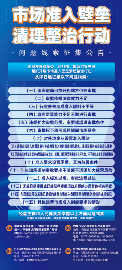 【征集】“市场准入壁垒清理整治行动”问题线索征集公告