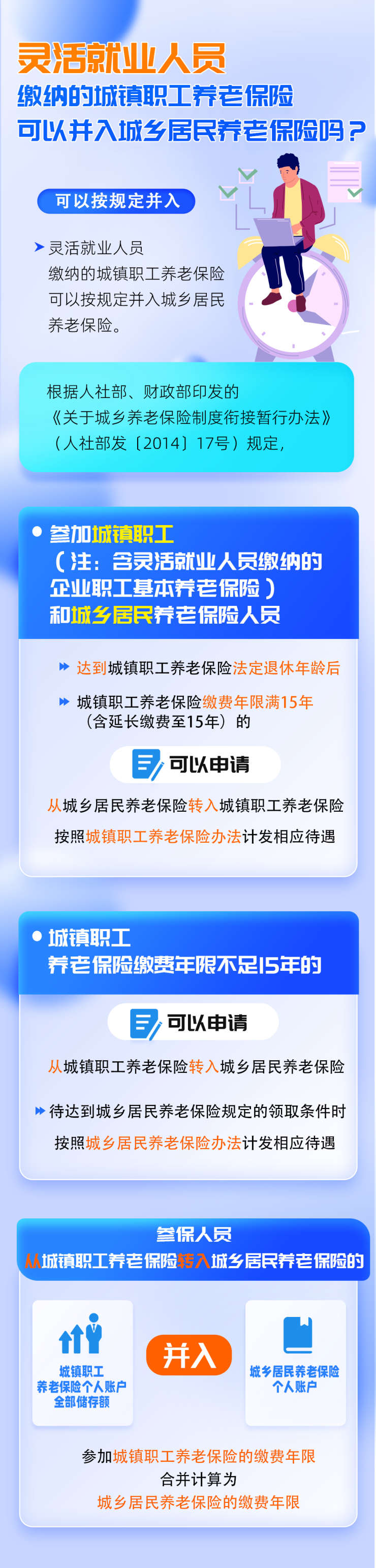 灵活就业人员缴纳的城镇职工养老保险能并入城乡居民养老保险吗?一图看懂!