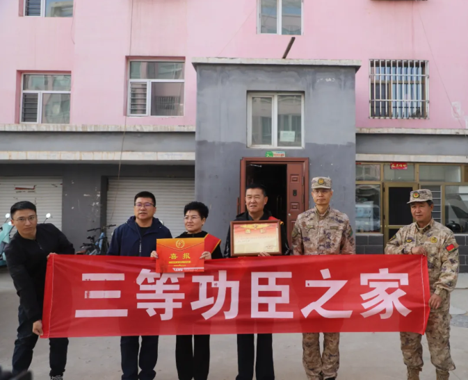 慰问现场,鲜艳的"三等功臣之家"横幅格外醒目。慰问组一行为军属披上象征荣誉的绶带,双手递上立功喜报与慰问品,详细询问家属的生活状况,对他们"舍小家为大家"的默默坚守表达由衷感谢。