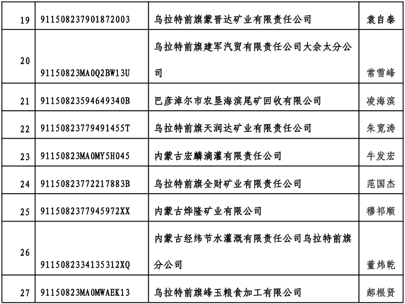 乌拉特前旗市场监督管理局关于对部分企业实施吊销营业执照《行政处罚决定书》进行公告送达的公告