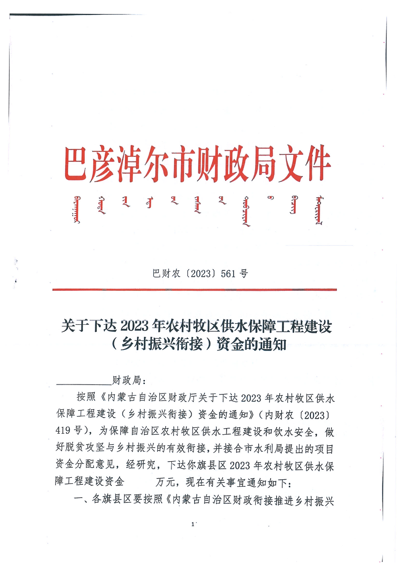 附:2023年自治区农村牧区供水保障工程建设(乡村振兴衔接)资金的通知