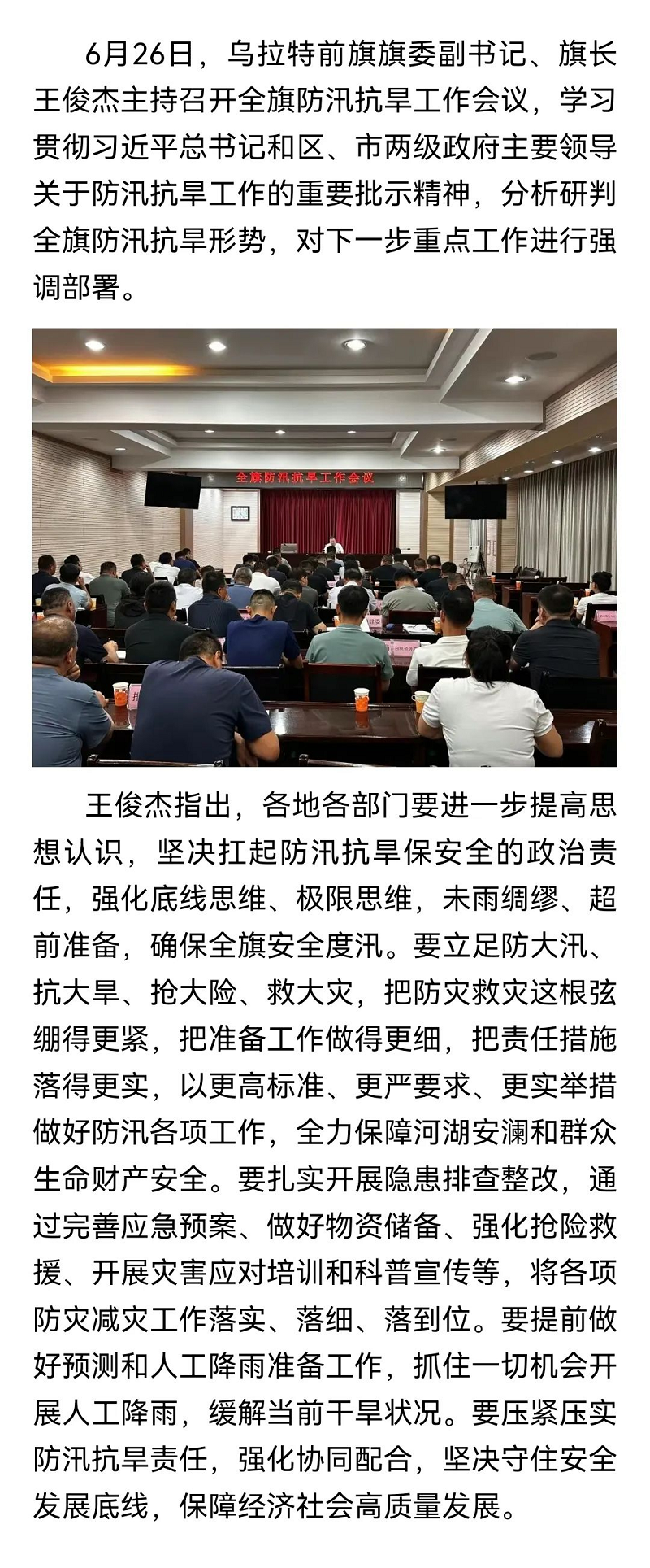 乌拉特前旗召开防汛抗旱工作会议