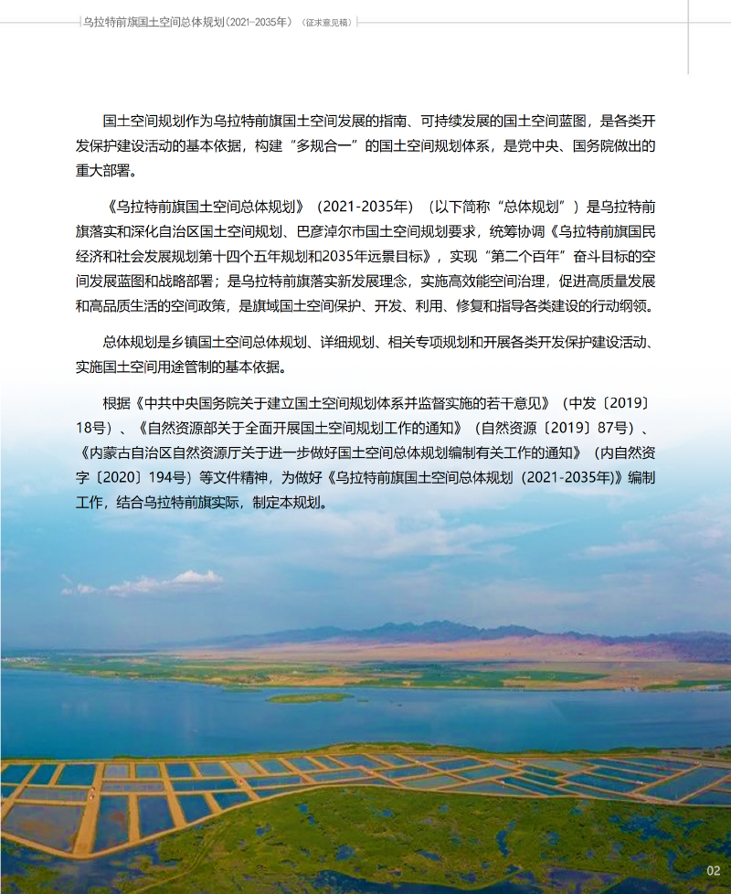 关于公开征求《乌拉特前旗国土空间总体规划(2021-2035年)》(征求意见版)