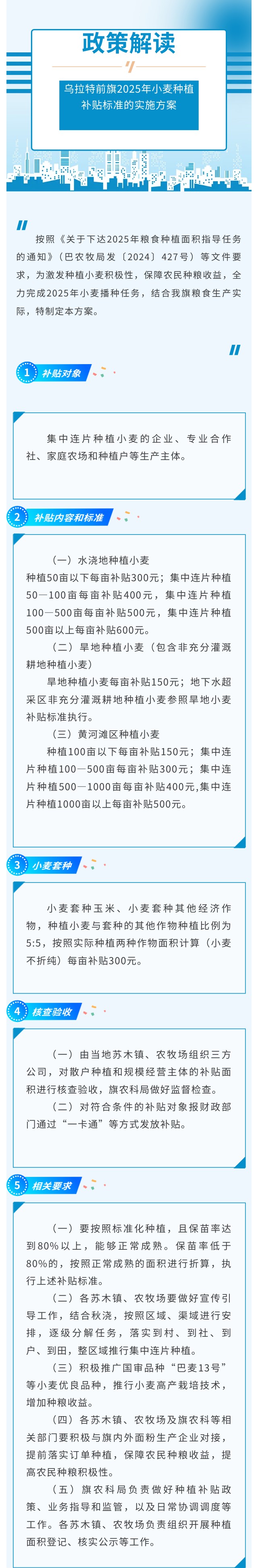【文字解读】关于《乌拉特前旗2025年小麦种植补贴标准的实施方案》的政策解读
