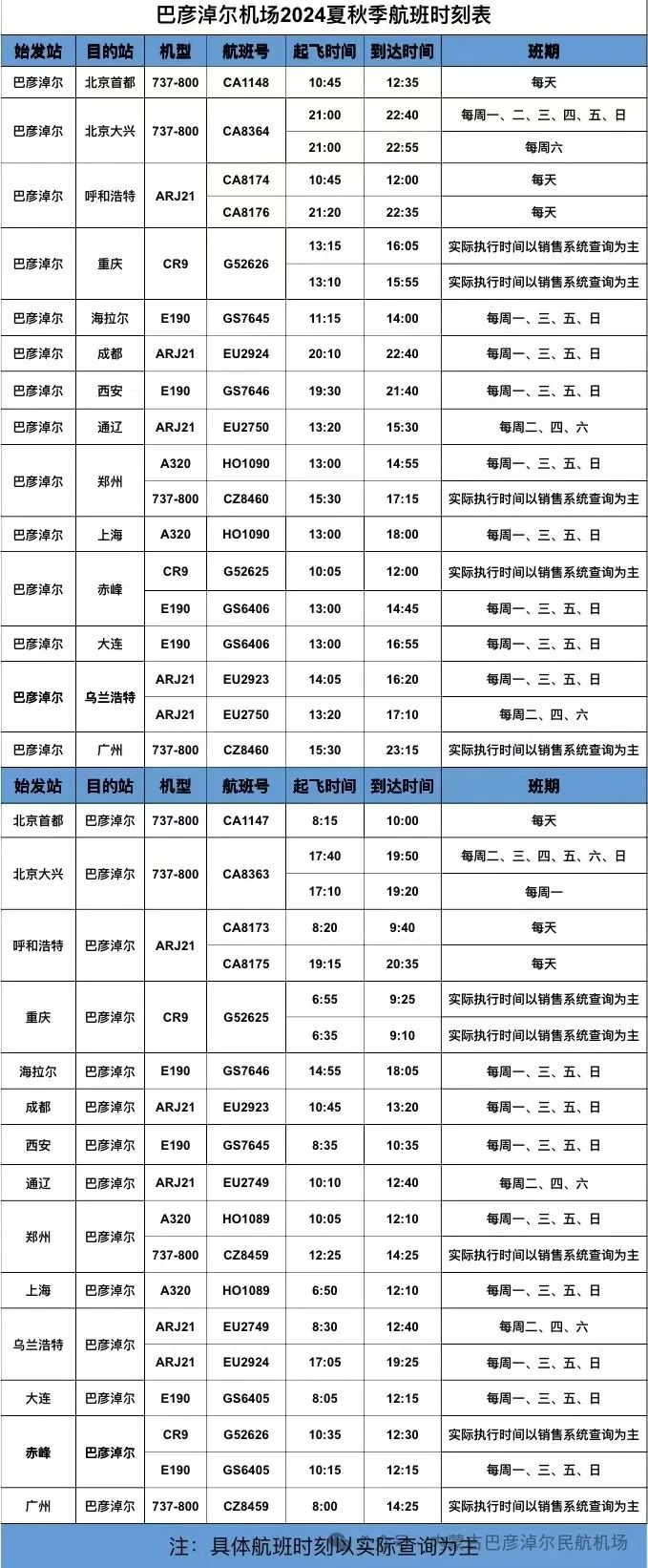 3月31日开始巴彦淖尔机场启用夏航季航班时刻。