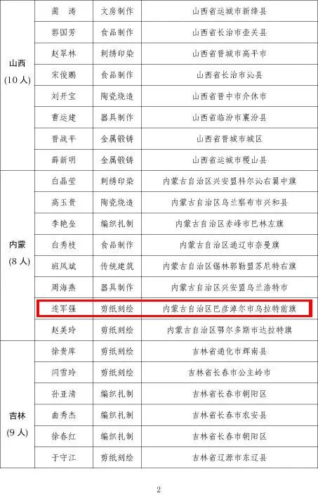 乌拉特前旗第一批乡村工匠名师拟认定名单公示