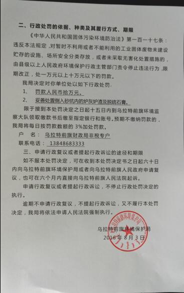 行政处罚决定书—乌拉特前旗福耀矿业有限责任公司