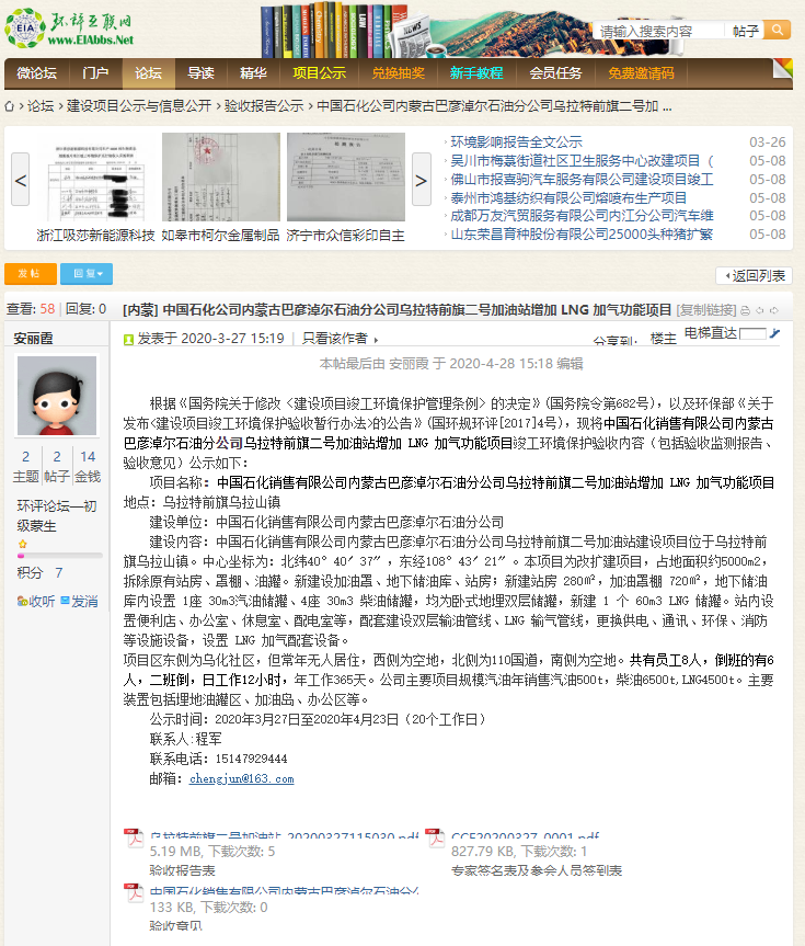 1.中国石化销售有限公司内蒙古巴彦淖尔石油分公司乌拉特前旗政府北街加油站验收检测报告、申请、自主验收意见、自主验收公示网址