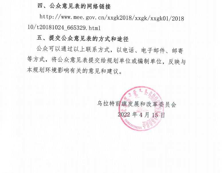 巴彦淖尔市生态环境局乌拉特前旗分局2022年4月14日作出的建设项目环境影响评价文件审批决定的公告