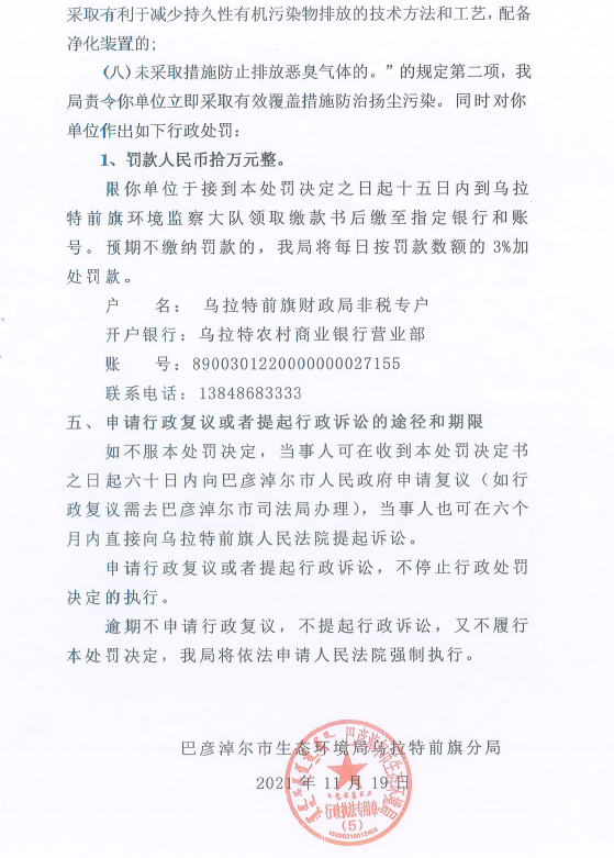 巴彦淖尔市生态环境局乌拉特前旗分局2022年7月12日拟审批项目的公示