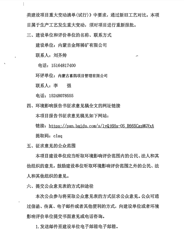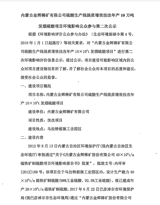 内蒙古金辉稀矿有限公司硫酸生产线提质增效技改年产10万吨发烟硫酸项目环境影响公众参与第二次公示