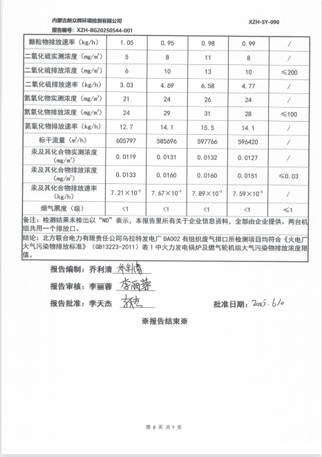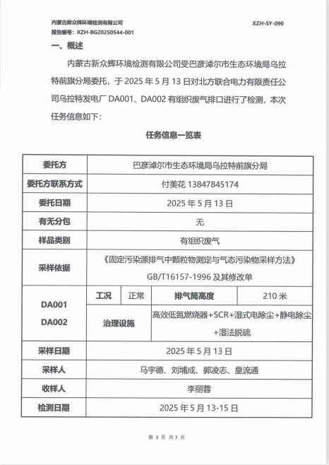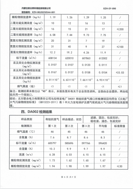 2025年北方联合电力有限责任公司乌拉特发电厂(有组织)