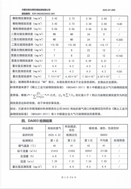 2025年巴彦淖尔市银海新材料有限责任公司(有组织)