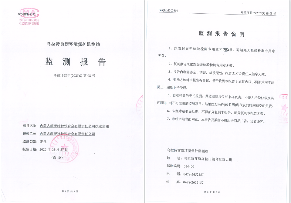 2025年内蒙古耀奎特种铁合金有限责任公司(有组织)