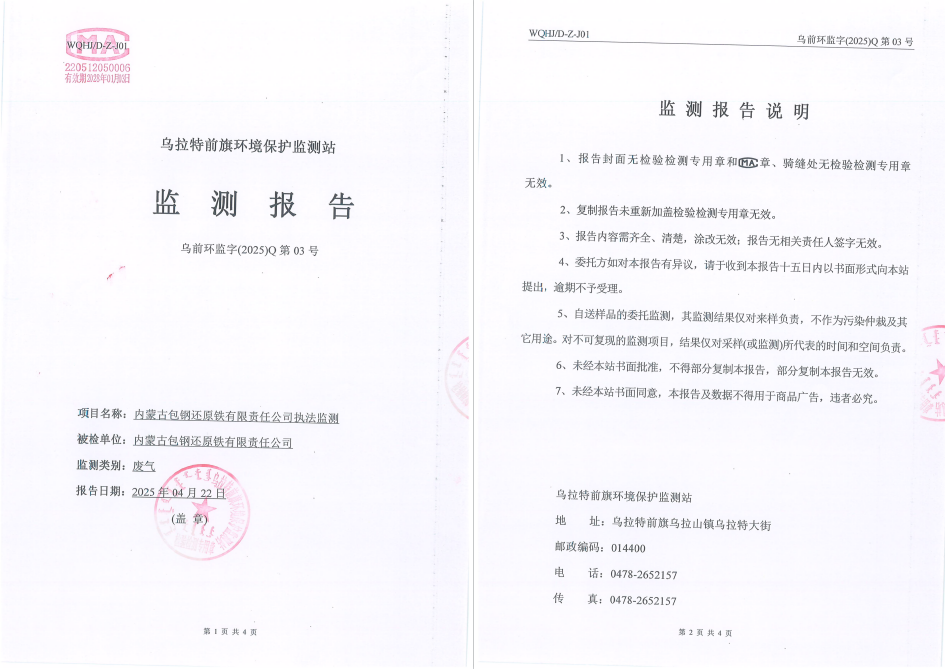 2025年内蒙古包钢还原铁有限责任公司(有组织)