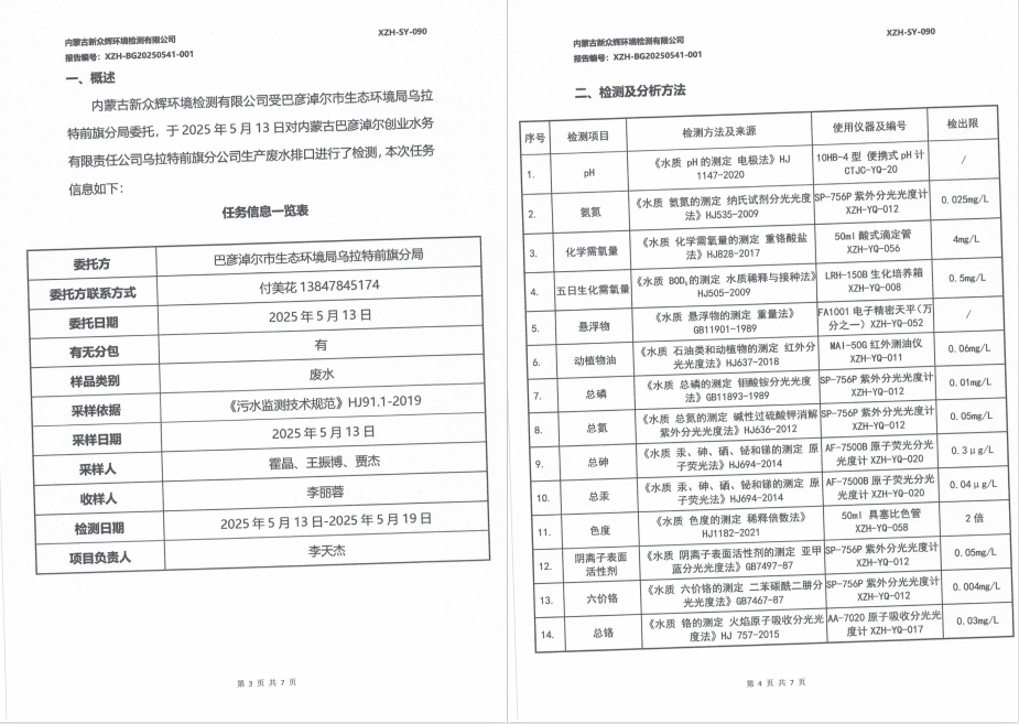 2025年内蒙古巴彦淖尔创业水务有限责任公司乌拉特前旗分公司(废水)