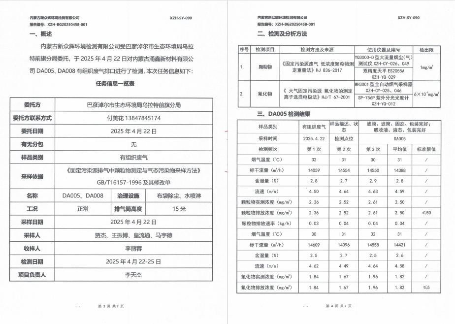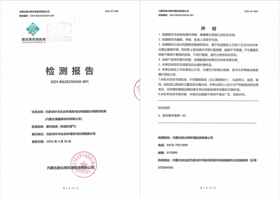 2025年内蒙古涌鑫新材料有限公司(有组织)