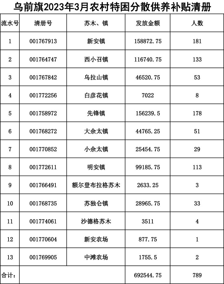 2023年3月特困发放清册