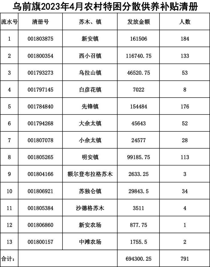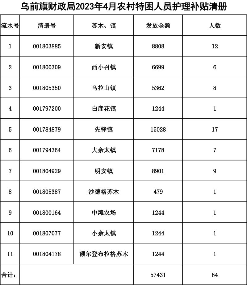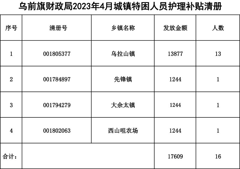 2023年4月特困发放清册