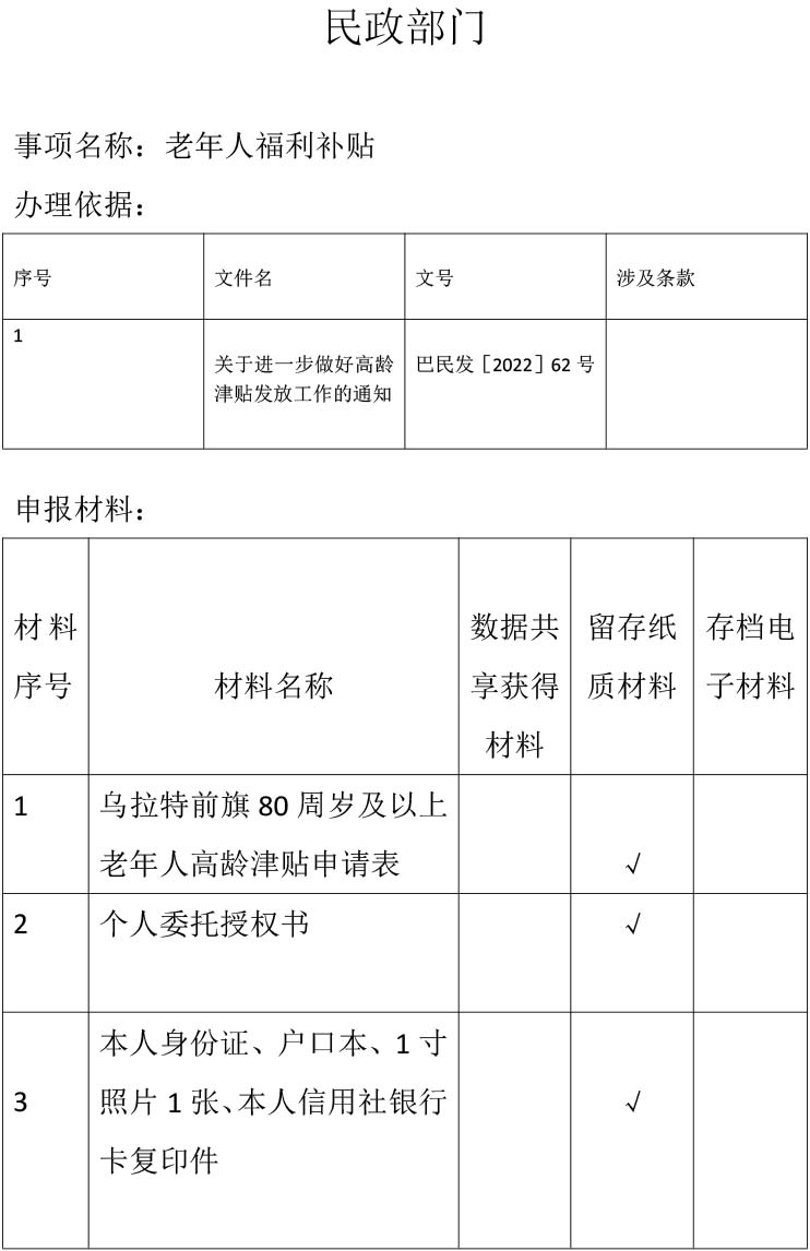 乌拉特前旗80周岁及以上老年人高龄津贴发放流程