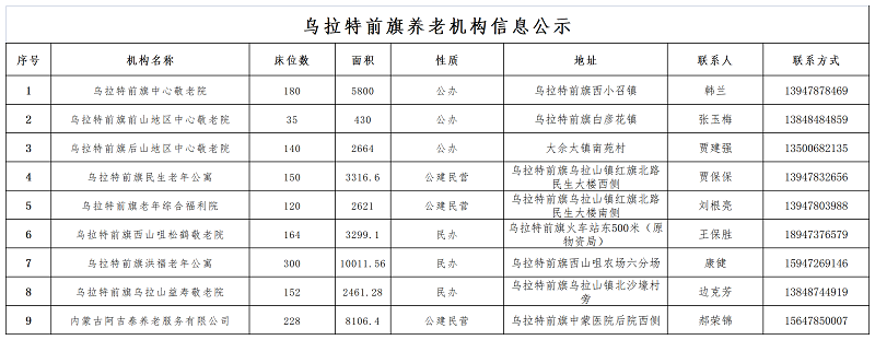 【养老机构备案信息】乌拉特前旗养老院基本信息