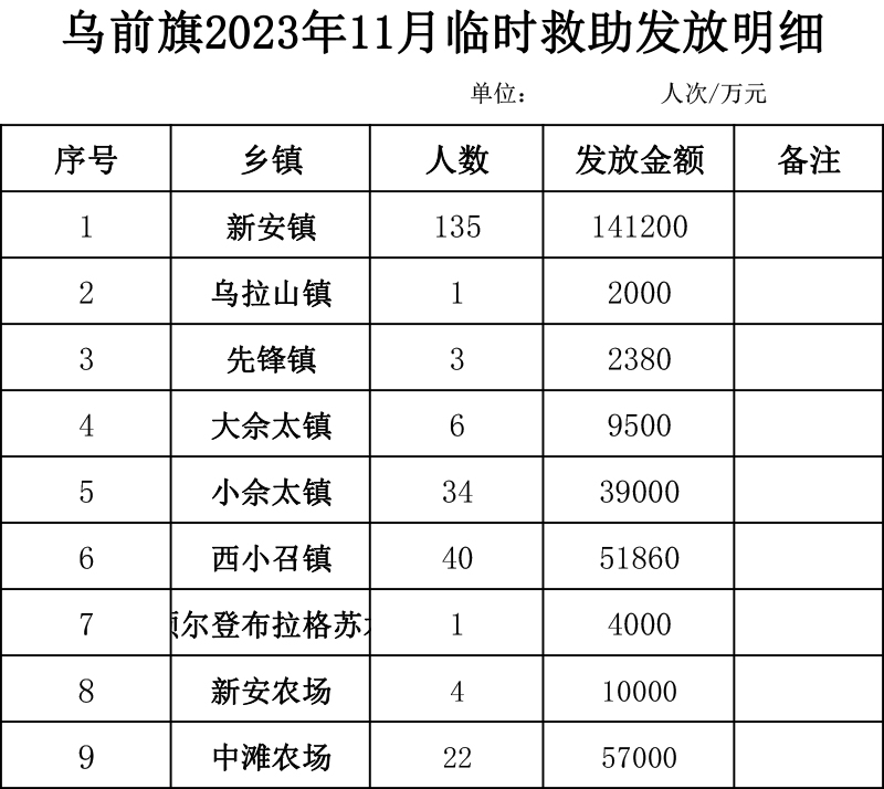 2023年11月临时救助发放明细