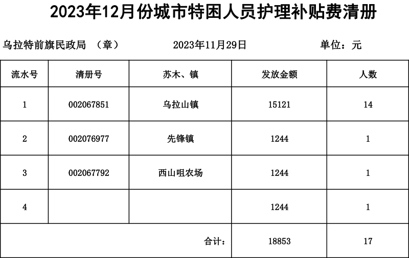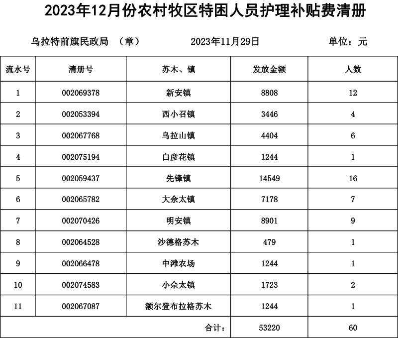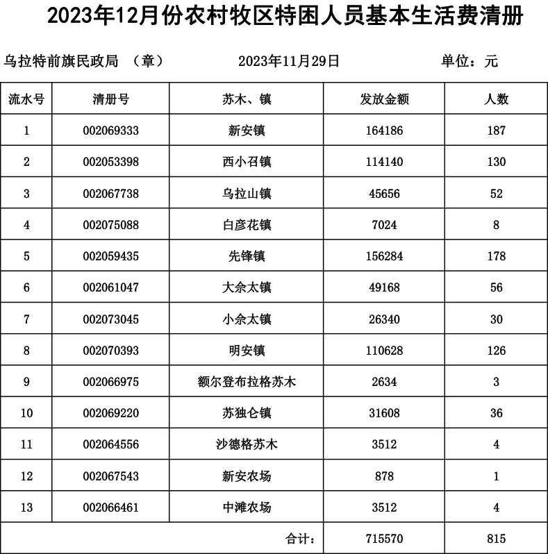 2023年12月份农村低保发放清册