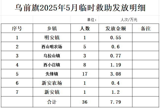 【临时救助】乌前旗2025年5月临时救助发放明细