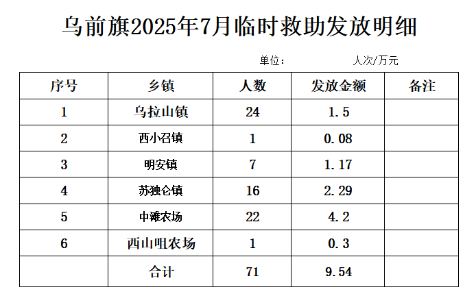 【临时救助】乌前旗2025年7月临时救助发放明细