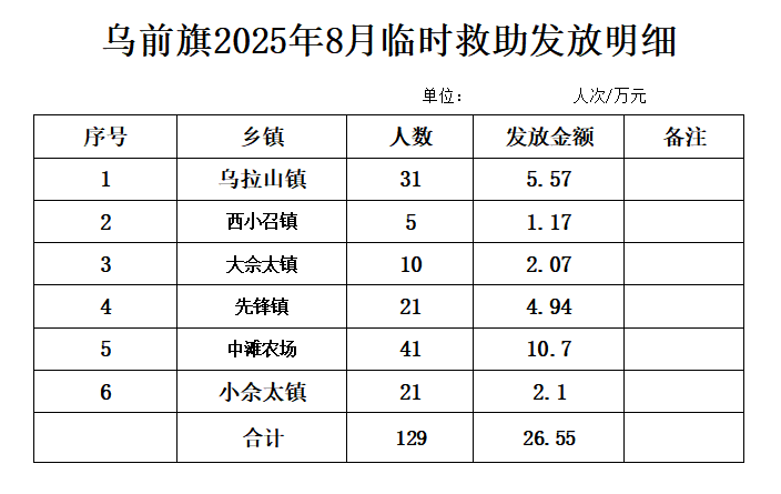 【临时救助】乌前旗2025年8月临时救助发放明细