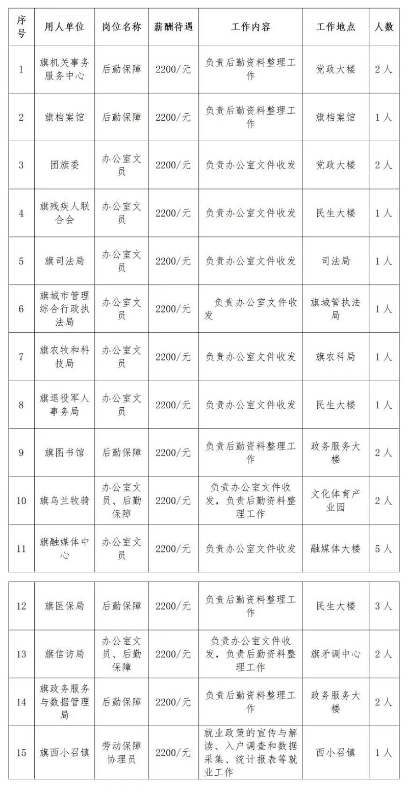 【招聘】关于乌拉特前旗招聘公益性岗位人员的公告