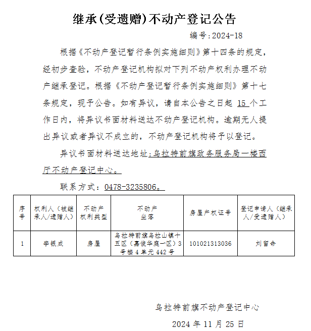 来源:乌拉特前旗不动产登记中心