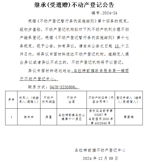 来源:乌拉特前旗不动产登记中心