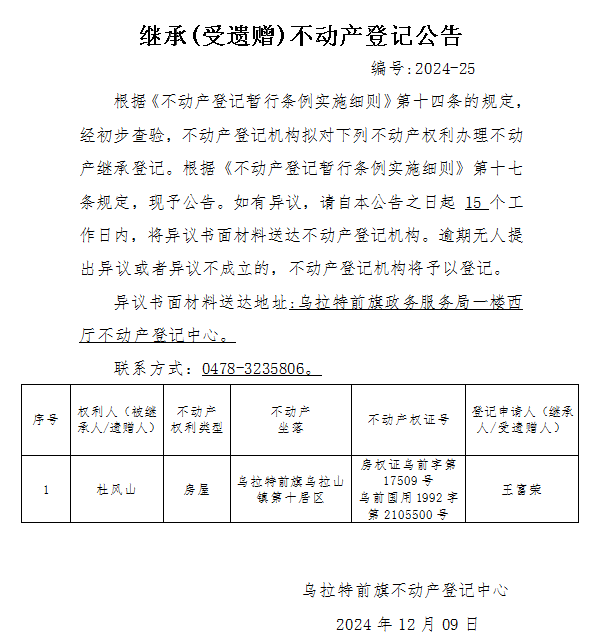来源:乌拉特前旗不动产登记中心