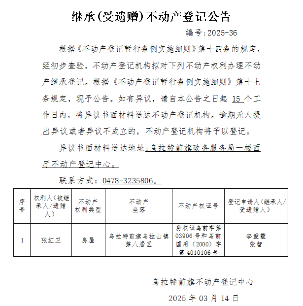 李爱霞 张智继承(受遗赠)不动产登记公告