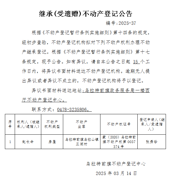 李爱霞 张智继承(受遗赠)不动产登记公告