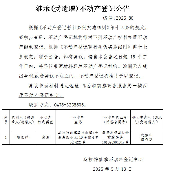 赵换山、薛秀花继承(受遗赠)不动产登记公告