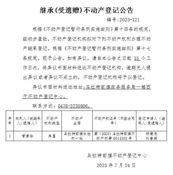 来源:乌拉特前旗不动产登记中心