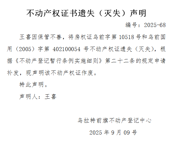 张利平 贾亚林不动产权证书遗失(灭失)声明