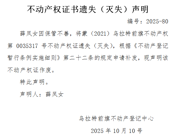 马风英 刘永和不动产权证书遗失(灭失)声明