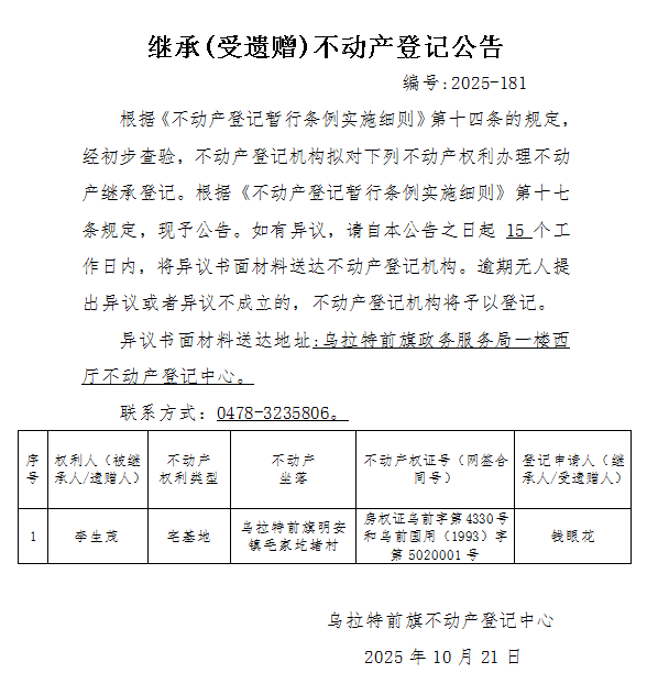 来源:乌拉特前旗不动产登记中心