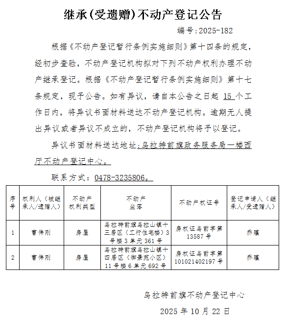 张海琴 张海滨 张海花继承(受遗赠)不动产登记公告