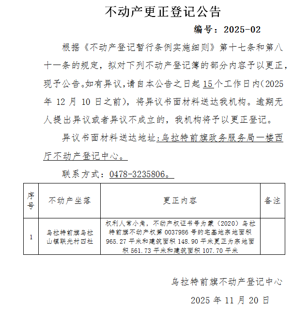 来源:乌拉特前旗不动产登记中心