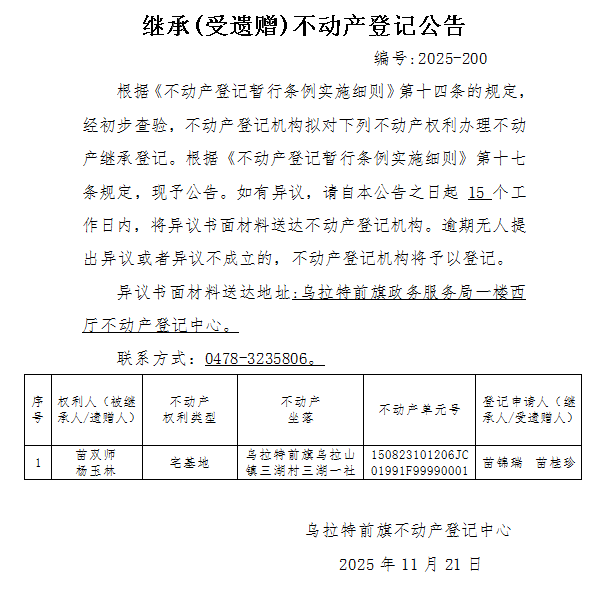 苗锦瑞 苗桂珍继承(受遗赠)不动产登记公告