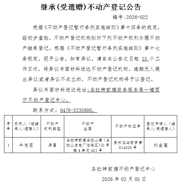 来源:乌拉特前旗不动产登记中心